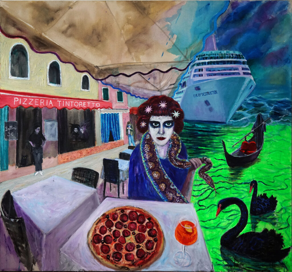 Often my paintings take me to imaginary worlds while at the same time commenting on our real world.