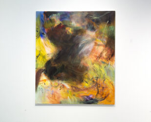 Painting is wandering, fumbling. There I am in the whirlwind of rapid changes, where I can trust that things will not go as planned. The layering of oil paint allows you to be peacefully lost when painting, as each new layer changes the composition, the atmosphere, everything. Much is about the corrective movement, when the material behaves differently than I anticipated. When I try to correct an area that is too stable, or when I destroy a form that is too obvious, by coincidence a space may occur on the canvas.