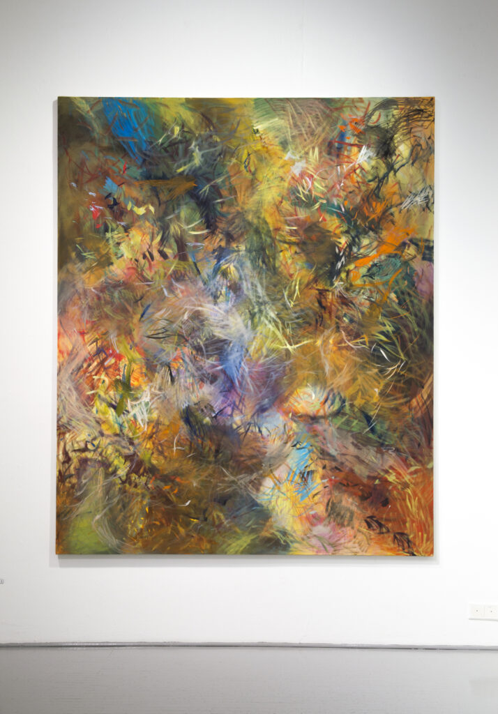 In my paintings, I want to depict the process of formation rather than the finished form. Object-based language often seems to obscure the kinetic nature and interactivity of life. The basic unit of life is not the object, but a process. I look for ways to embody a world where nothing stays still, but where form is constantly on its way into another form.