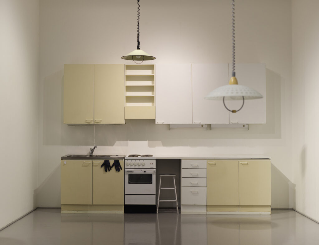 Iiris Kaarlehtos utställning Der Küchenbau är ett rumsligt förslag bestående av skulpturala element och objektsammansättningar. Verken i utställningen knyter an till idéer om modern och postmodern inredningsarkitektur, personliga och heminredda rum, och de processer, tekniker och fantasier som är förknippade med dem. Genom funna, insamlade och i varierande grad modifierade föremål närmar sig Kaarlehto minnet och betydelselagren i vardagliga föremål och material.